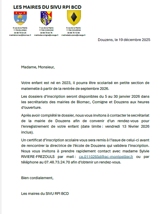 ÉCOLES DU R.P.I à Douzens et Blomac